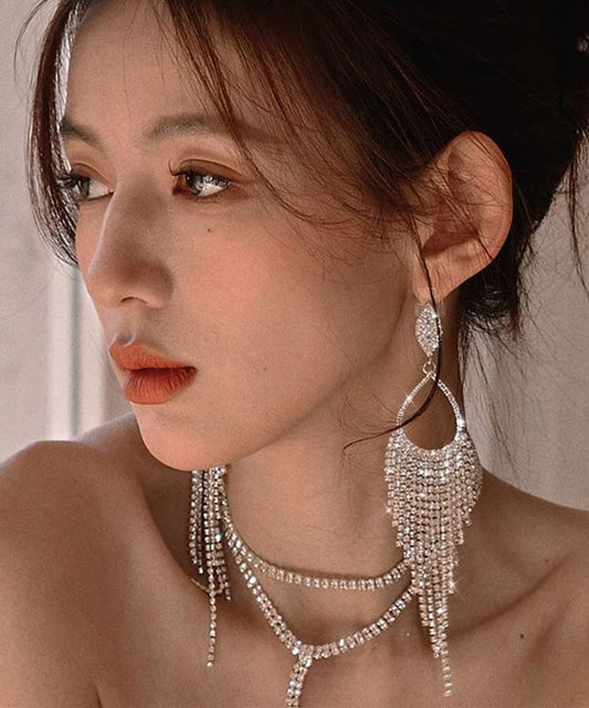 Boucles d'oreilles pendantes en argent sterling et zircons Art Silk II024