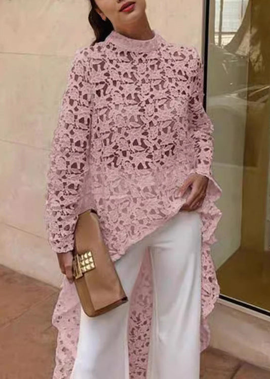 Art White Low High Design Hollow Out Lace Top Spring TL019