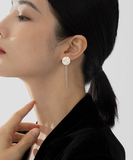 Boucles d'oreilles pendantes à pampilles en argent sterling Art White avec coquillage et petit oiseau QQ020