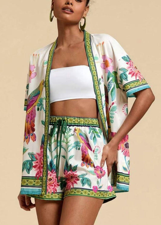 Blue Modern Pieces Neck And Shorts Royal Cardigans Two V Print