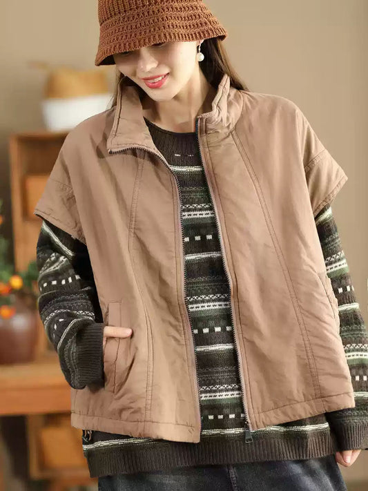 Manteau matelassé en coton à bretelles pour femme avec imprimé ethnique d'automne WG020