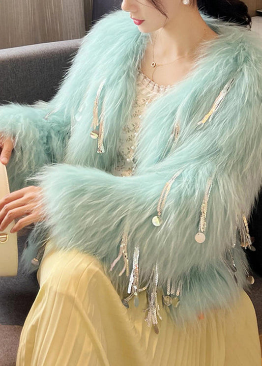 Bohemian Light Green Raccoon Hair Leather And Fur Coat Winter RD017