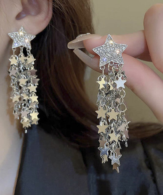 Brief Metal Tassel Love Silk Star Earrings Hoop