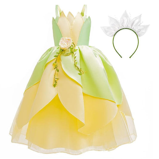Girl Fairytale Princess Theme Dress Bell Tinker Flower Tiana