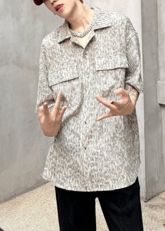 Chemises boutonnées à rayures grises pour hommes à manches courtes HG027