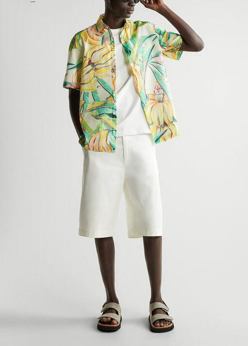 Chemises à manches courtes pour hommes avec imprimé col Peter Pan jaune mignon HG026