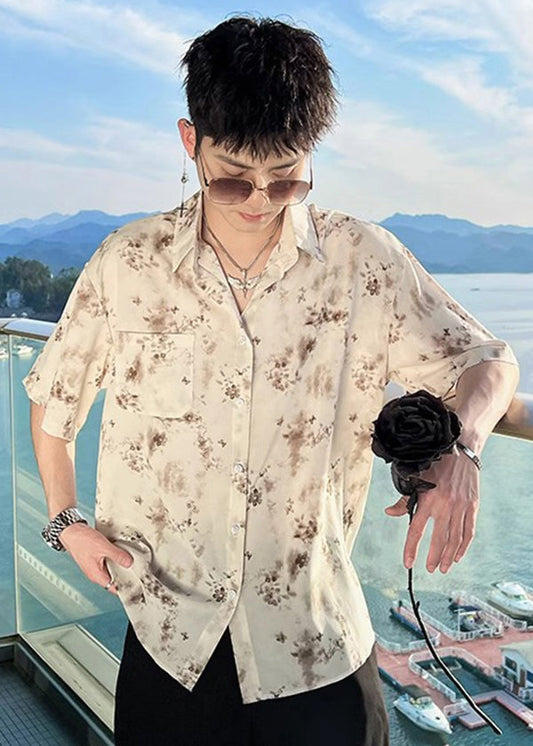 Chemises décontractées à manches courtes en coton imprimé col Peter Pan pour hommes HG025
