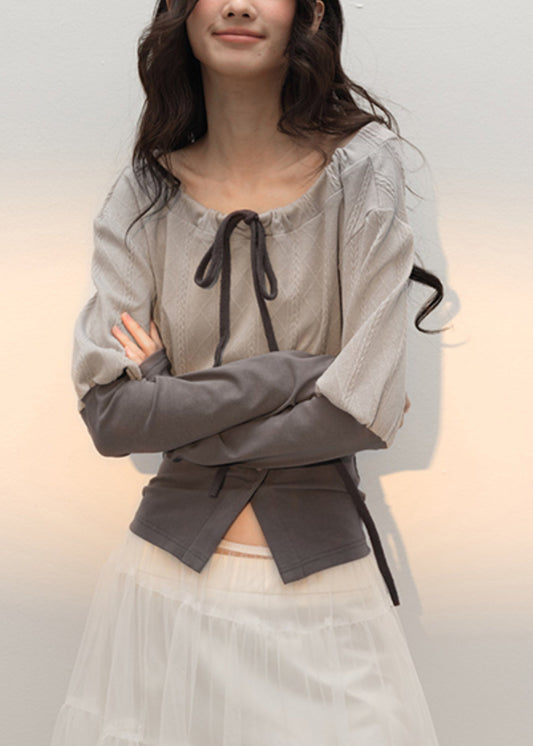 Fall Up Slim Patchwork T Lace Grey Cotton Shirts Fit