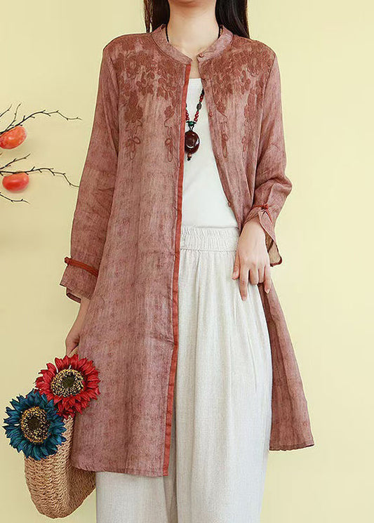 Linen Bracelet Sleeve Women Green Embroidered Light Shirts