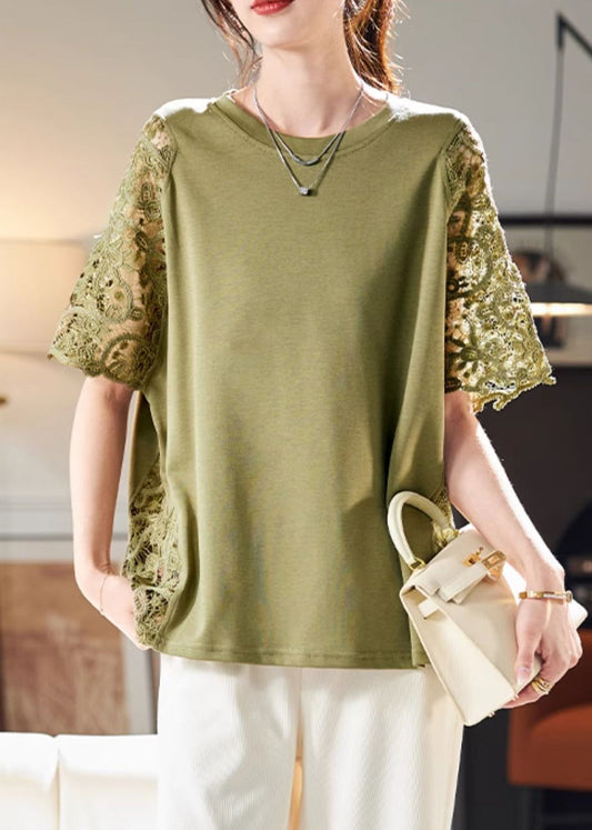 Hollow Patchwork Out Shirts Lace Green Loose T Summer