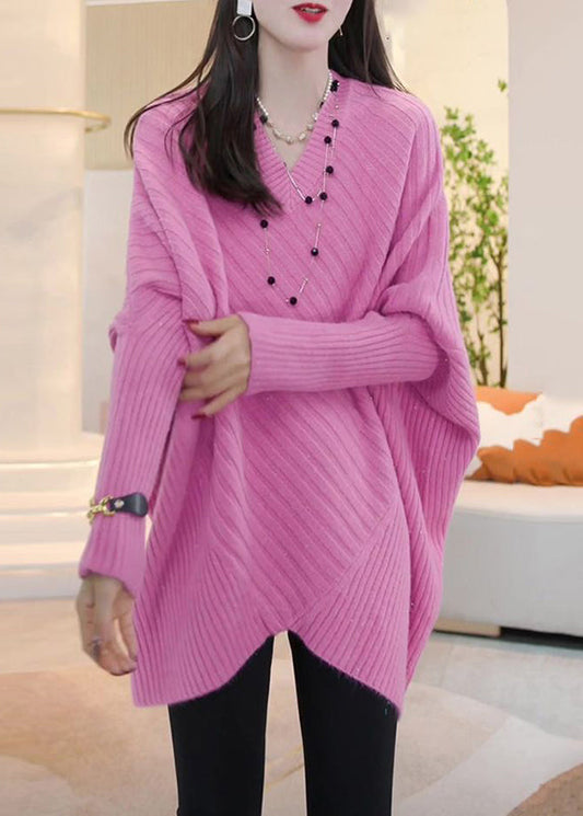 French Rose V Neck Cozy Woolen Versatile Sweater Winter WN036