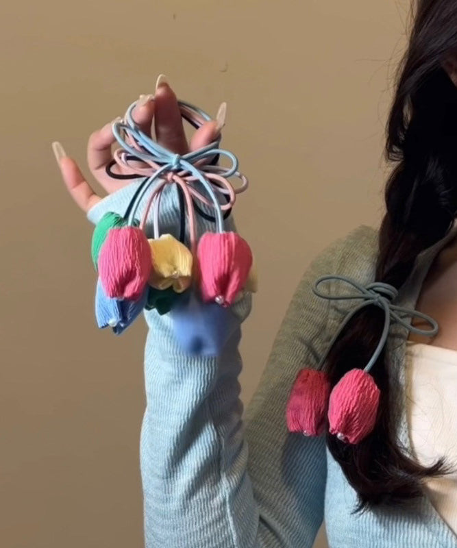 Indulge in the exquisite craftsmanship of our Beautiful Pink Handmade Weaving Tulip Bow Tassel Hair Rope, bringing a touch of elegance and sophistication to your hair. Adorn yourself with this luxurious accessory, meticulously crafted with the utmost care and attention to detail, reminiscent of the artistry seen in high-end fashion.