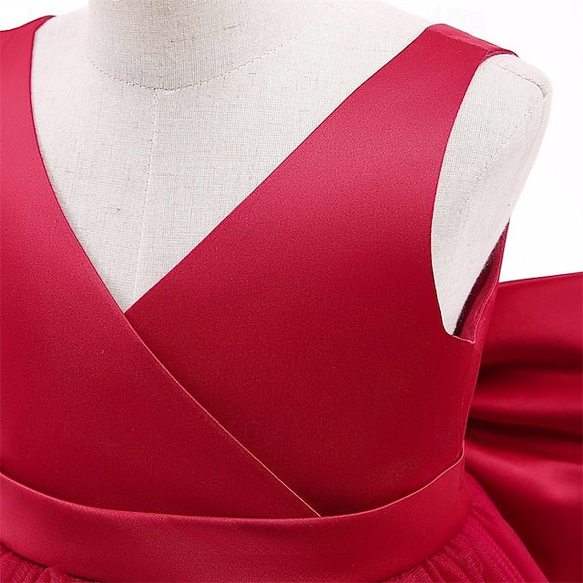 Gender: Girls', Kid's, Style: Elegant, Beautiful, Occasion: Performance, Wedding, Party, Birthday, Kids Apparel: Princess Dress, Fabric: Polyester, Pattern: Solid Color, Sleeve Length: Sleeveless, Design: Mesh, Age: 4 years+, Season: Summer, Spring, Look After Me: Wet and Dry Cleaning, Washable, Length [Dress] (cm): 4-5 Years(120cm):65;5-6 Years(130cm):70;7-8 Years(140cm):75;9-10 Years(150cm):80;11-12 Years(160cm):85, Fit Type: Regular Fit, Dress Length (cm): Maxi, Function: Comfort, Neckline: V Neck,
