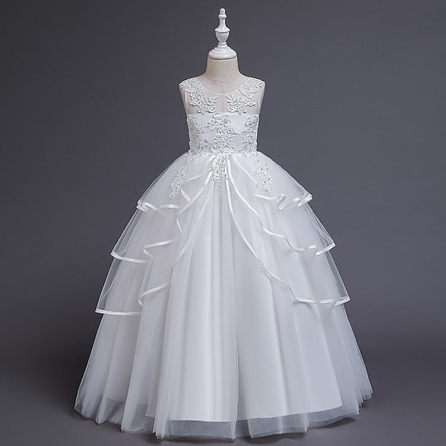 Gender: Girls', Age Group: Kids, Style: Fashion, Princess, Occasion: Performance, Wedding, Birthday, Kids Apparel: Dress, Party Dress, Fabric: Polyester, Pattern: Solid Color, Sleeve Length: Sleeveless, Design: Mesh, Age: 2-13 Years, Season: Summer, Spring, Look After Me: Hand wash, Elasticity: Micro-elastic, Fit Type: Form Fit, Dresses Type: Party Dress, Flower Girl's Dress, Dress Length (cm): Midi, Neckline: Crew Neck,