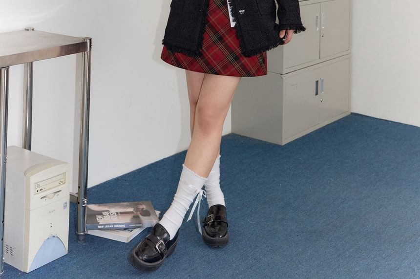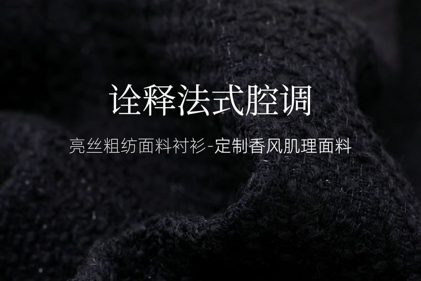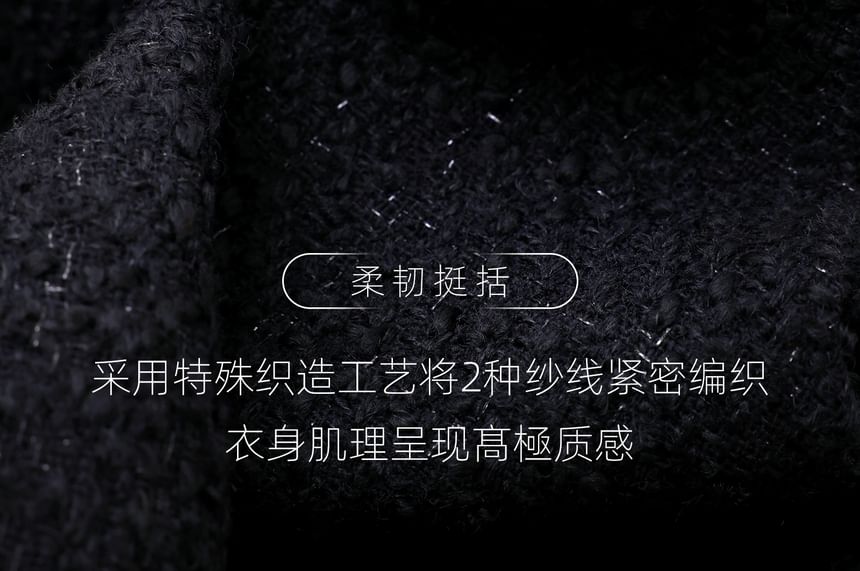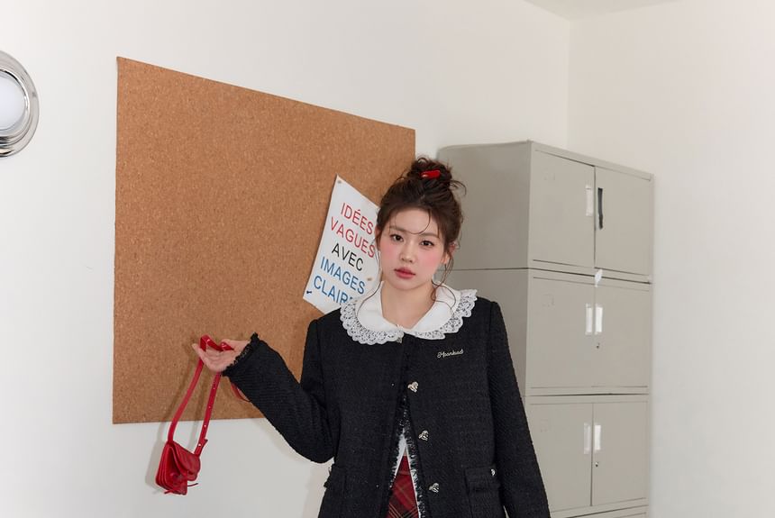 Plus Size Round Neck Plain Fray Tweed Heart Button Jacket
