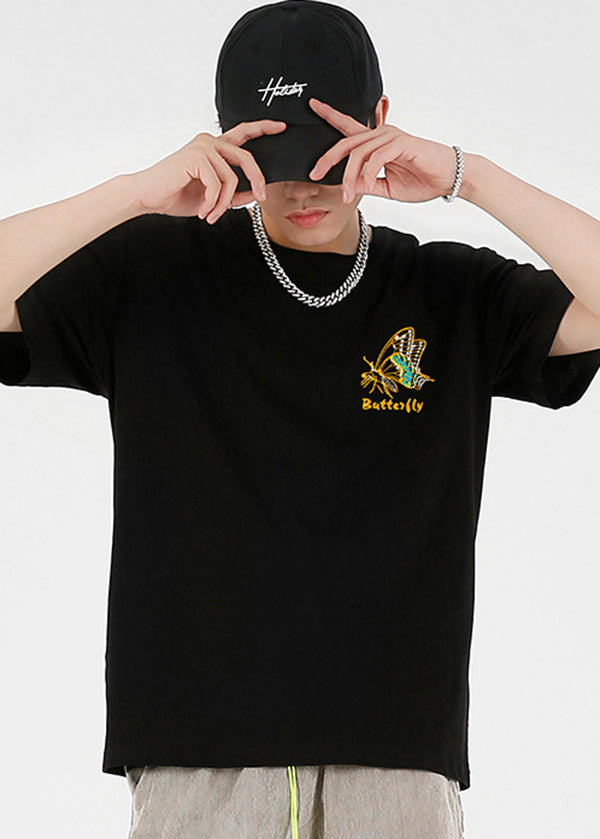 Shirts Embroideried White T Fashion Cotton Summer Butterfly