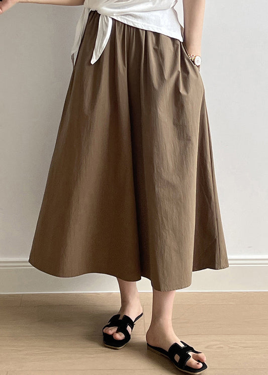 Pantalon large décontracté en coton avec poches marron et taille élastique pour l'été QB003
