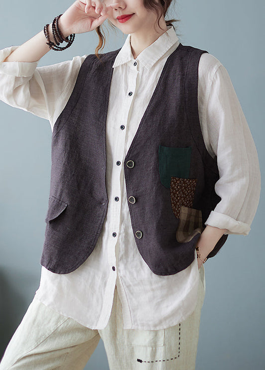 Débardeur décontracté en coton à col en V et poches boutonnées sans manches OO010