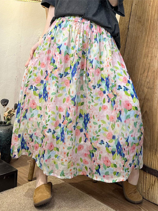 Jupe d'été en ramie double épaisseur à imprimé floral pour femme BN1041