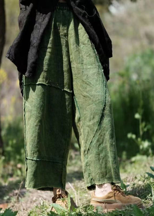 Pantalon court en lin à taille élastique avec poches vertes vintage pour l'été VB1084