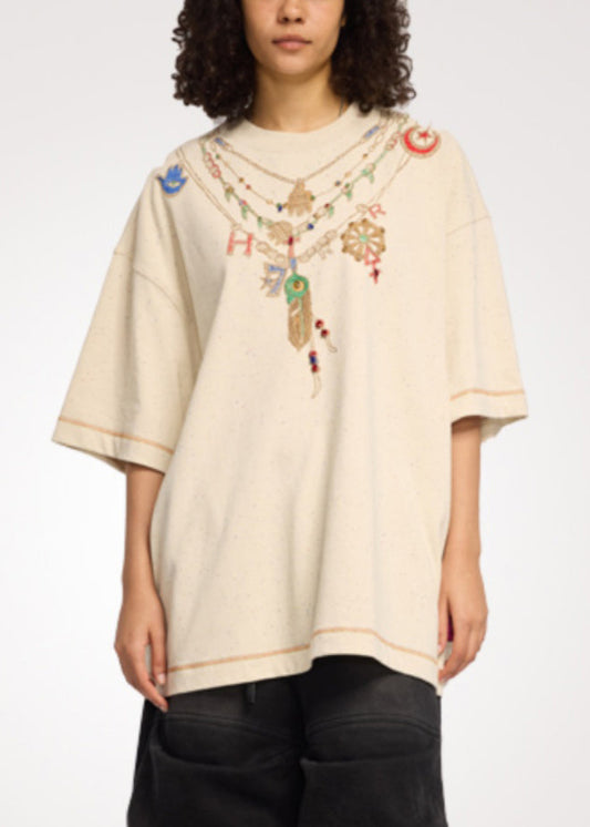 T-shirts en coton brodés à col rond blancs faits à la main pour hommes, été LK042