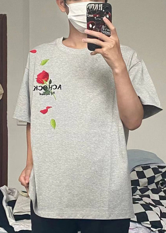 T-shirt ample en coton uni imprimé gris pour homme, été LK068