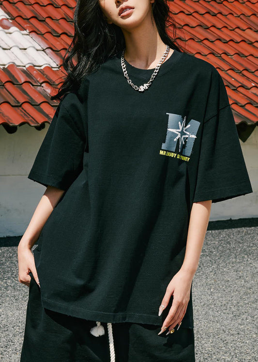 T-shirt ample en coton noir chic pour homme avec zircons, été LK062