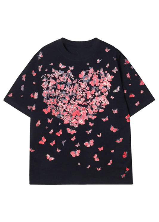 T-shirt neutre en coton brodé à la main avec papillon blanc pour homme, été LK063