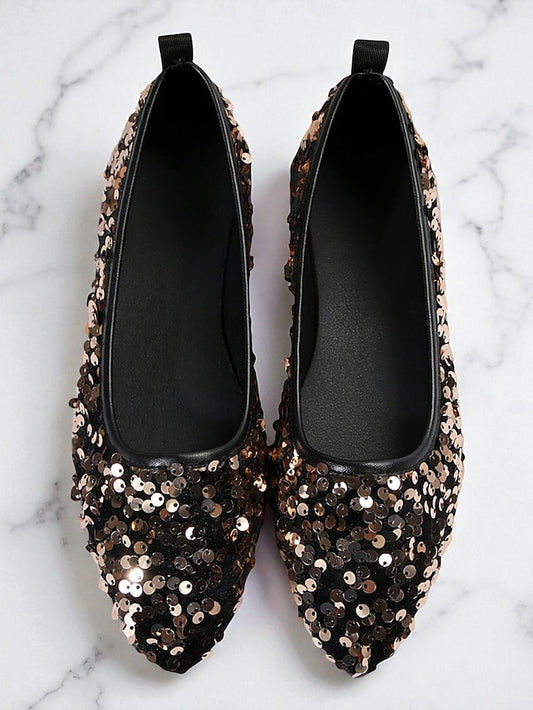Flats Pointed Sparkly Toe Women's Black - Sequin Ballet
