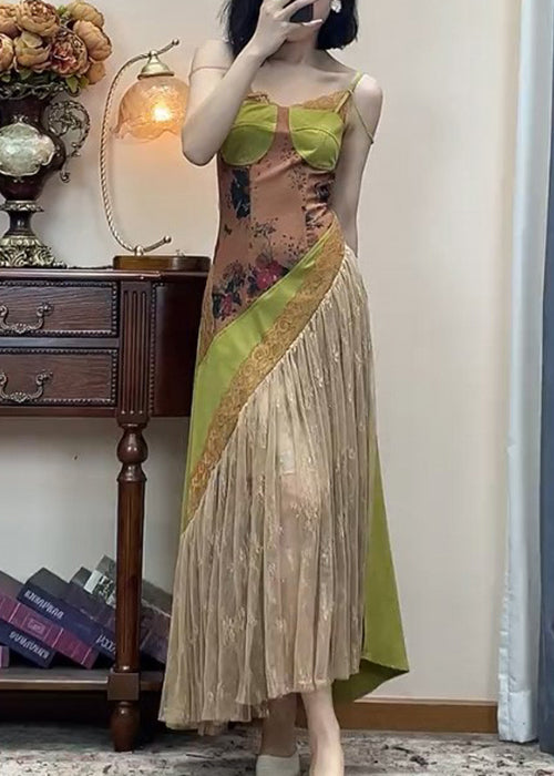 Spaghetti Lace New Green Dress Patchwork Strap Sleeveless