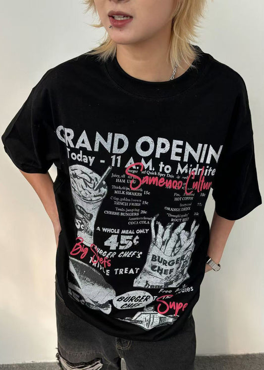 Art Black Print Loose Cotton Mens Graphic Tees Short Sleeve YL009