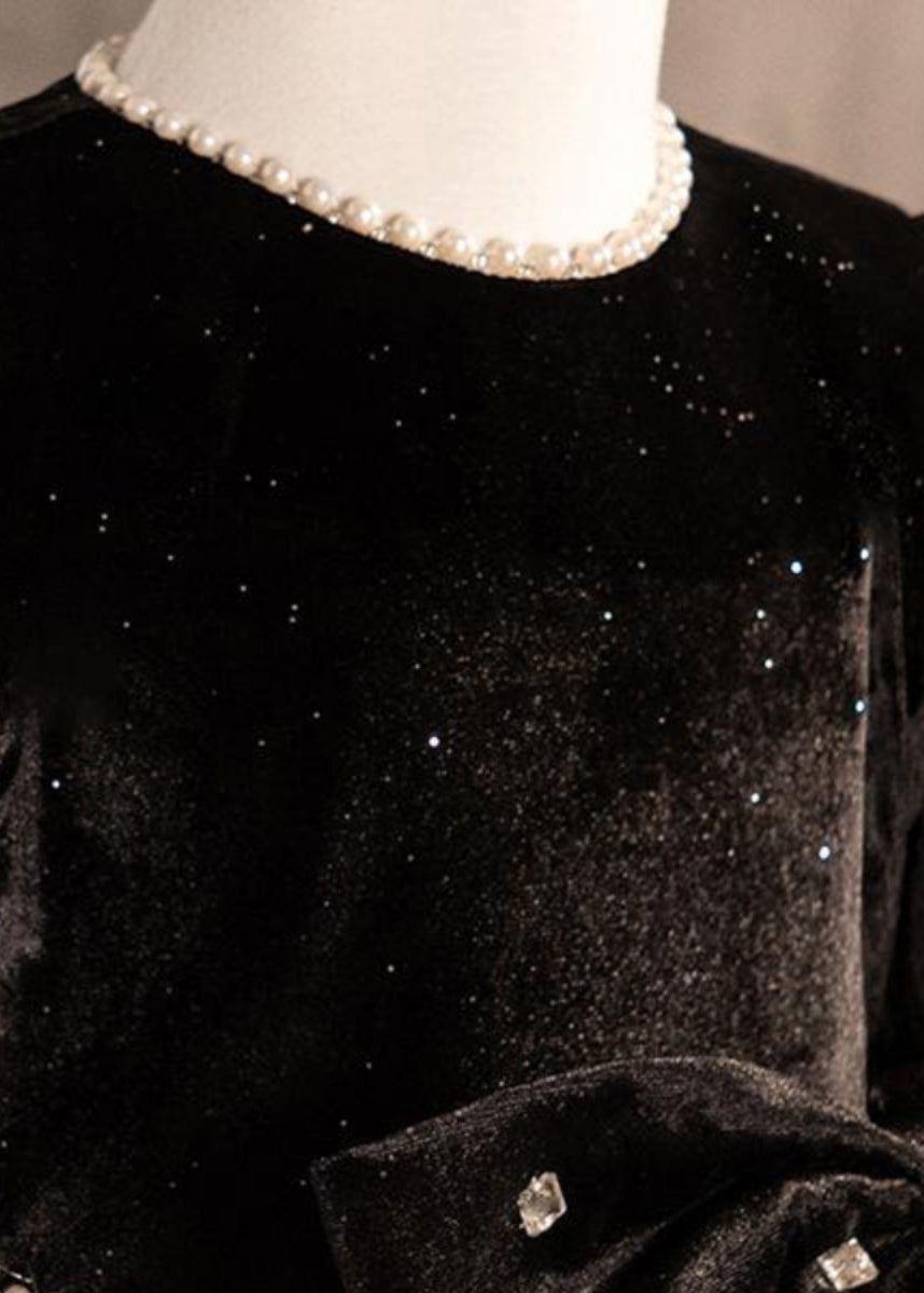 Indulge in the luxurious elegance of our Art Black Patchwork Bow Silk Velour Girls Long Dress, perfect for the winter season.