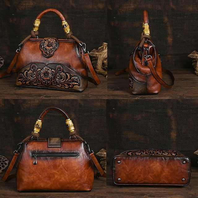 Gender: Women's, Type: Boston Bag, Material: PU Leather, Embellishment: Embossed, Pattern: Folk, Flower, Color Block, Occasion: Holiday, Party, Daily, Width (cm): 11, Height (cm): 20, Length (cm): 29, Function: Large Capacity, Durable, Multi Carry, Lightweight, Category: Crossbody Bag, Shoulder Bag, Handbag,
