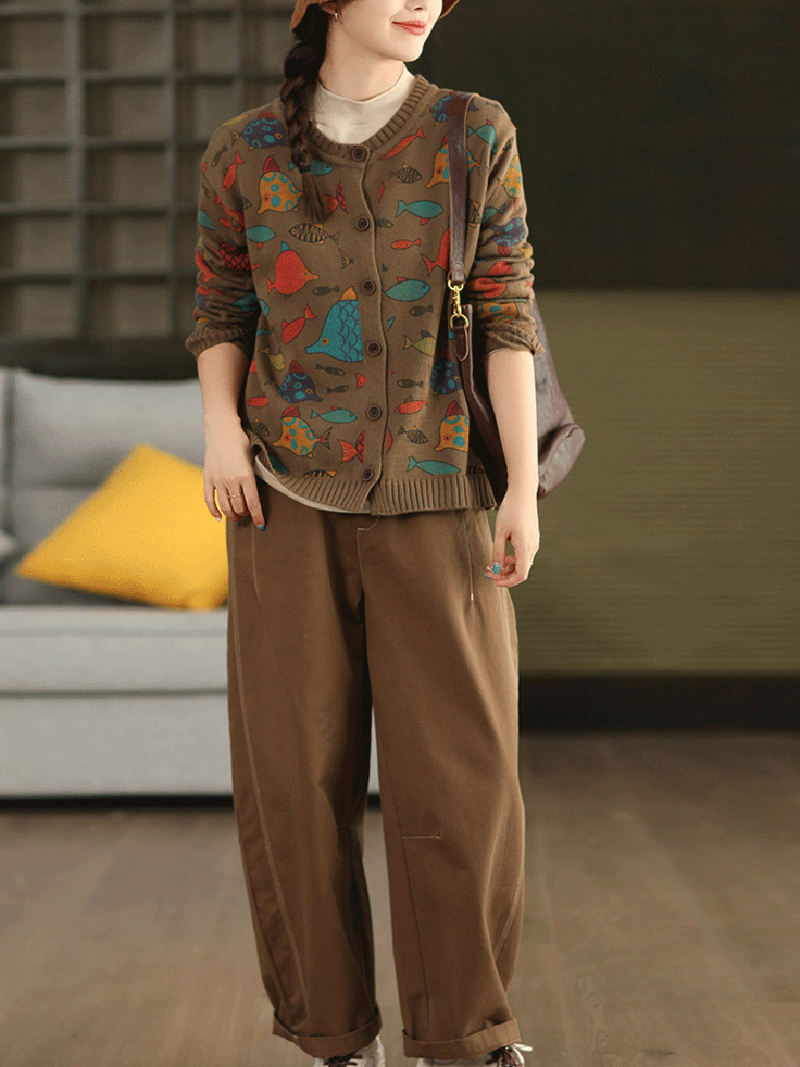 Fish Artsy Autumn O-Neck Sweater Cartoon Women