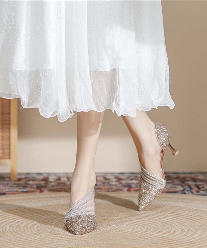 2025 Splicing Stiletto High Heels in Champagne Sequins, exuding luxury.