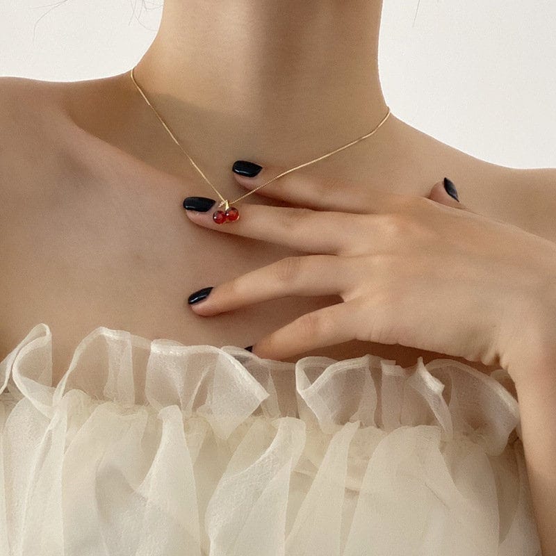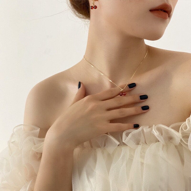 Add some cherry-on-top to your jewelry collection with this precious pendant necklace and earrings set. With its playful design and charming cherry motif, this set is sure to be the cherry on top of any outfit! (Not edible, but still cute!!!)