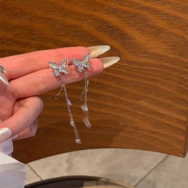 Butterfly Faux Cat Eye Stone Alloy Dangle Earring