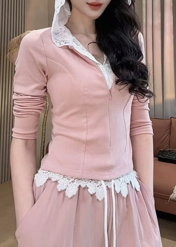 Cute Pink Fake Two Pieces Hooded Sweatshirt And Wide Leg Pants Two Pieces Set Spring