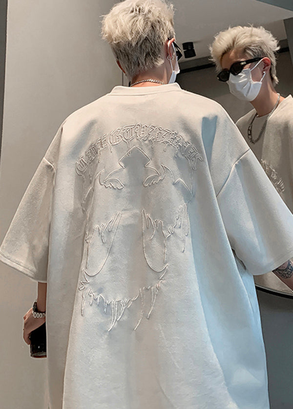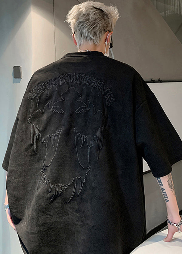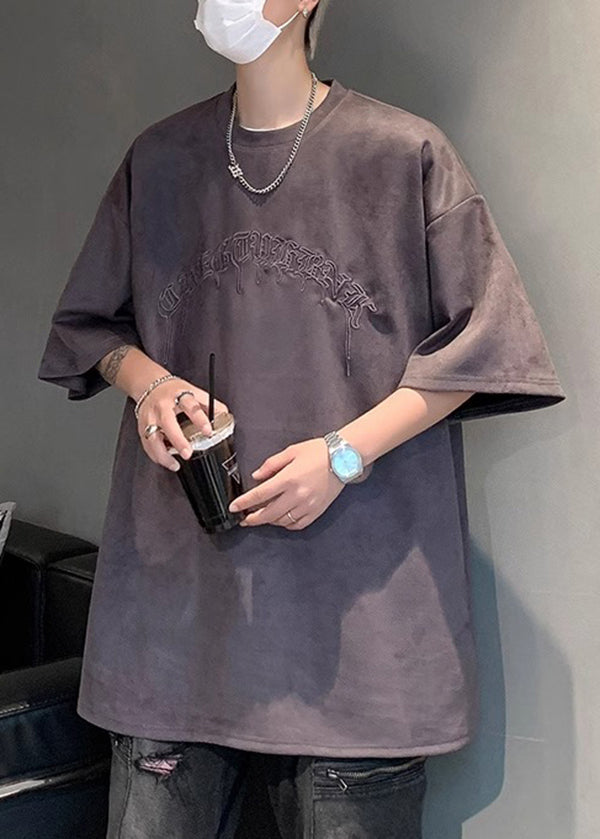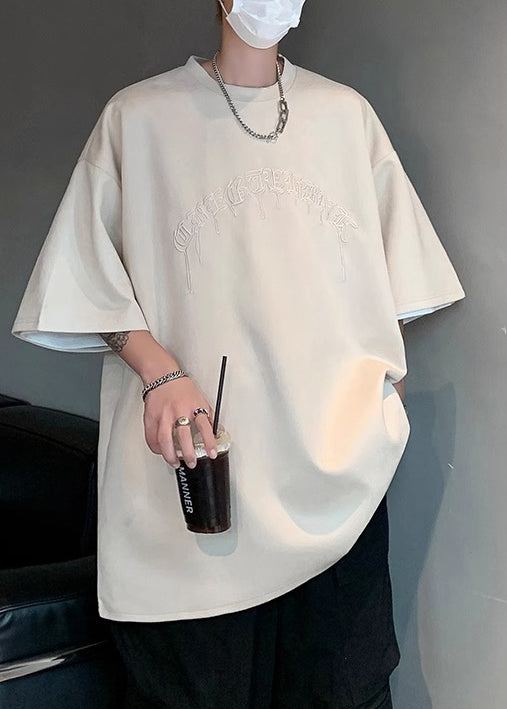 Plus Size Apricot Embroideried Faux Suede T Shirts Men Apparel Summer