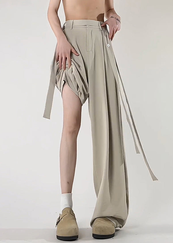 Art Beige Original Design Pockets Ice Silk Men Pants Summer