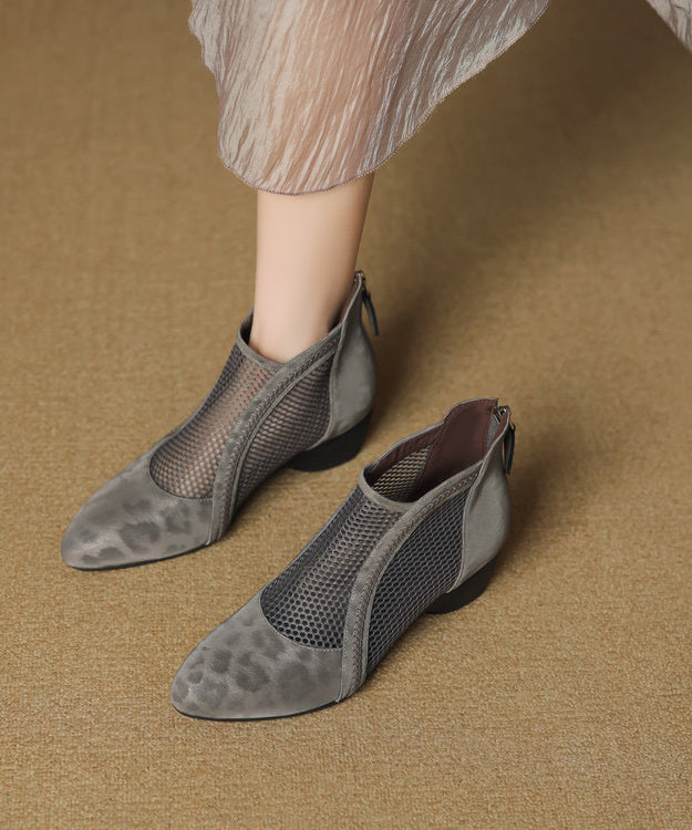 Handmade Splicing Chunky Boots Black Breathable Mesh