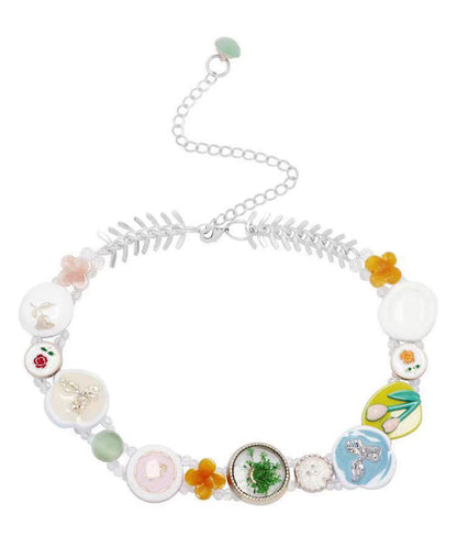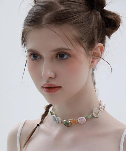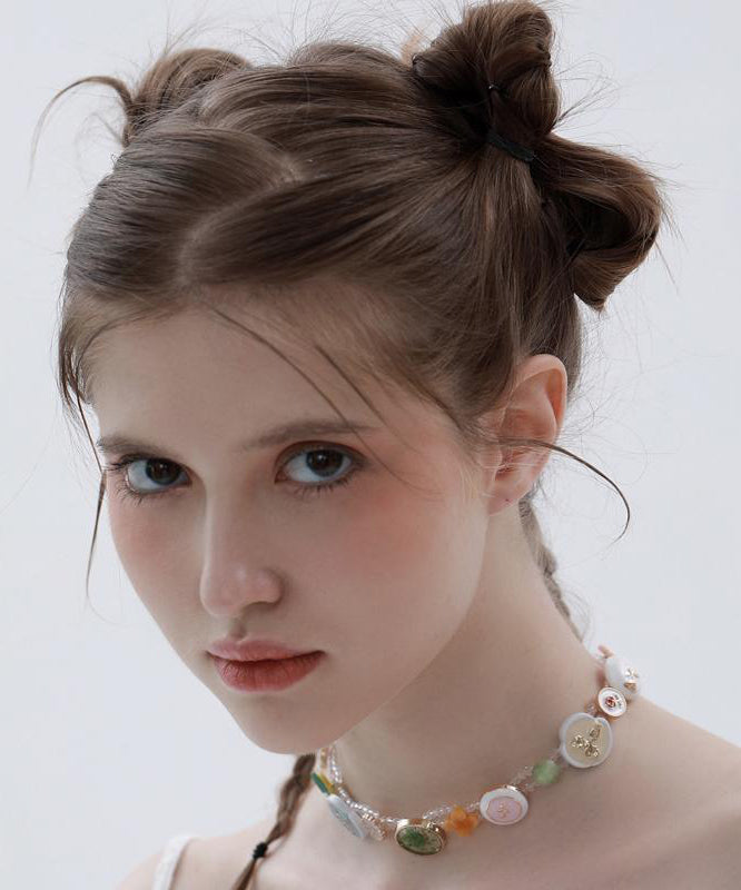 Boho Rainbow Alloy Beading Button Princess Necklace YD036
