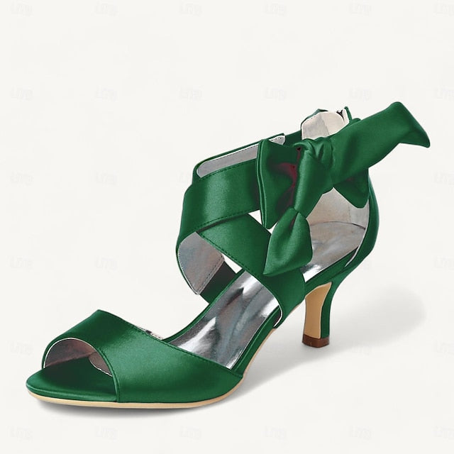 Bridal Women's Open Bowknot Heel Shoes Wedding Kitten