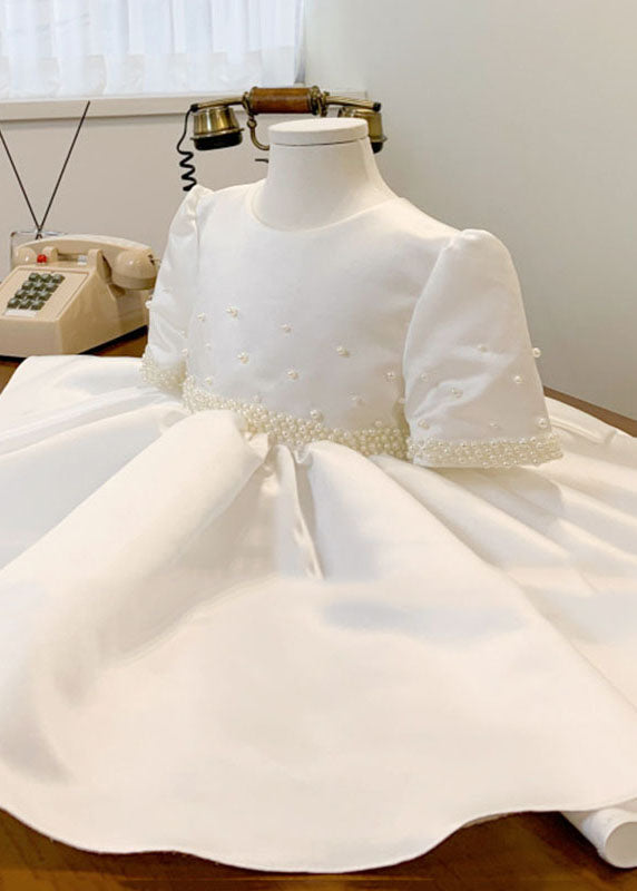 Brief White Nail Bead Girls Maxi Dress Summer YS014