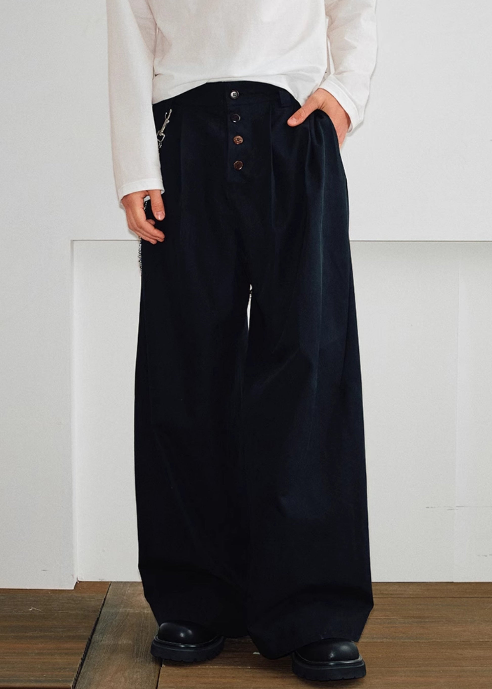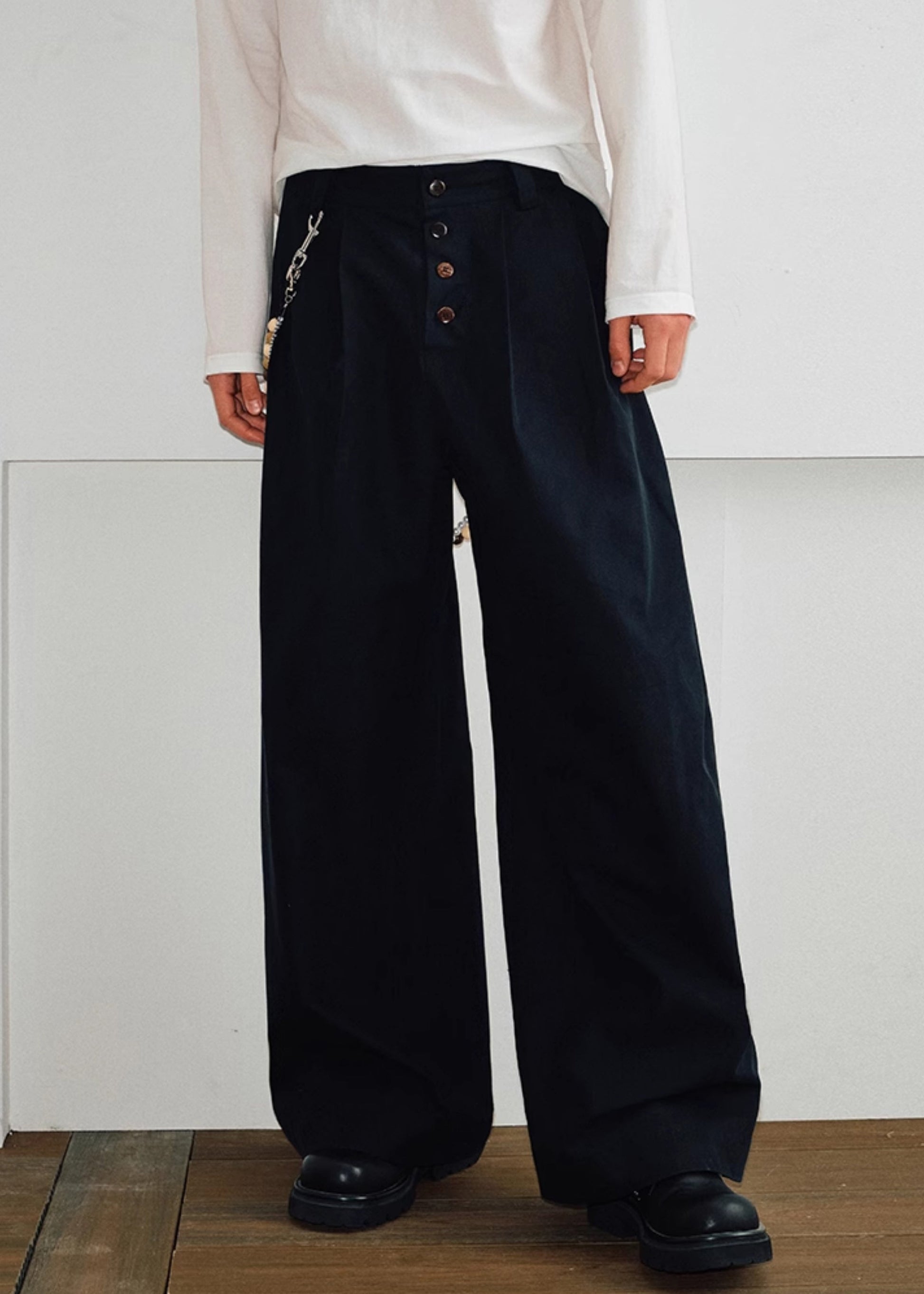 French Khaki Button Pockets Solid Cotton Mens Pants Summer