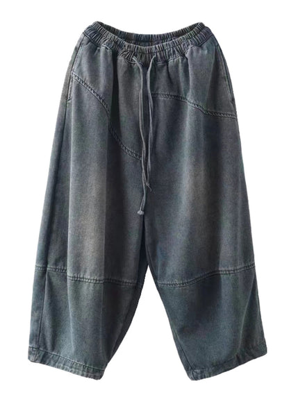 Casual Blue Pockets Elastic Waist Cotton Harem Pants Spring TN008
