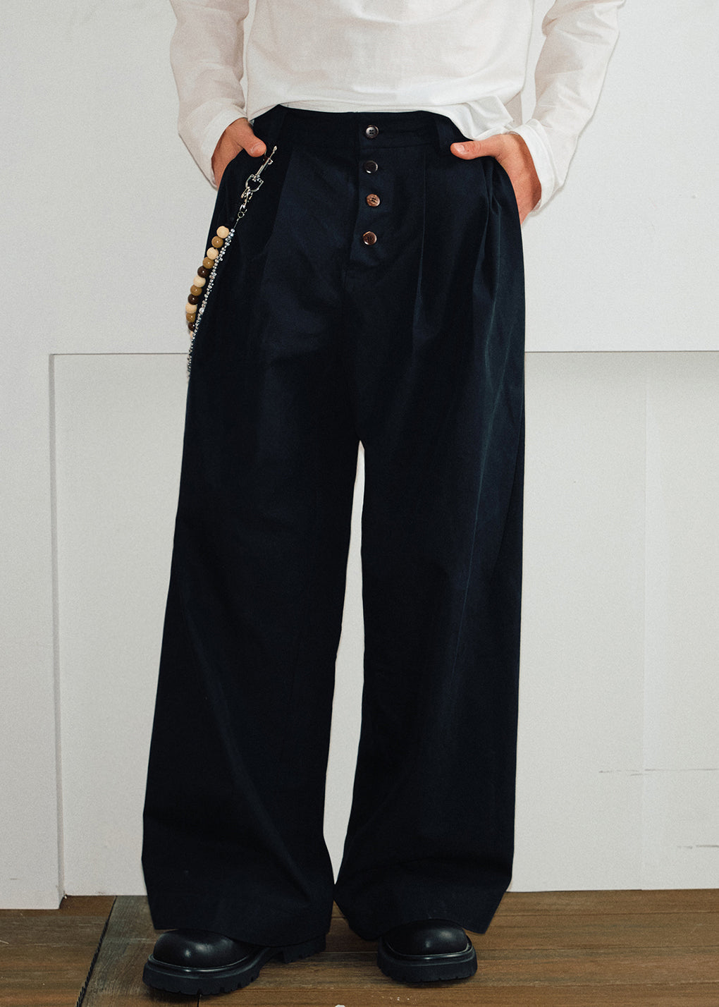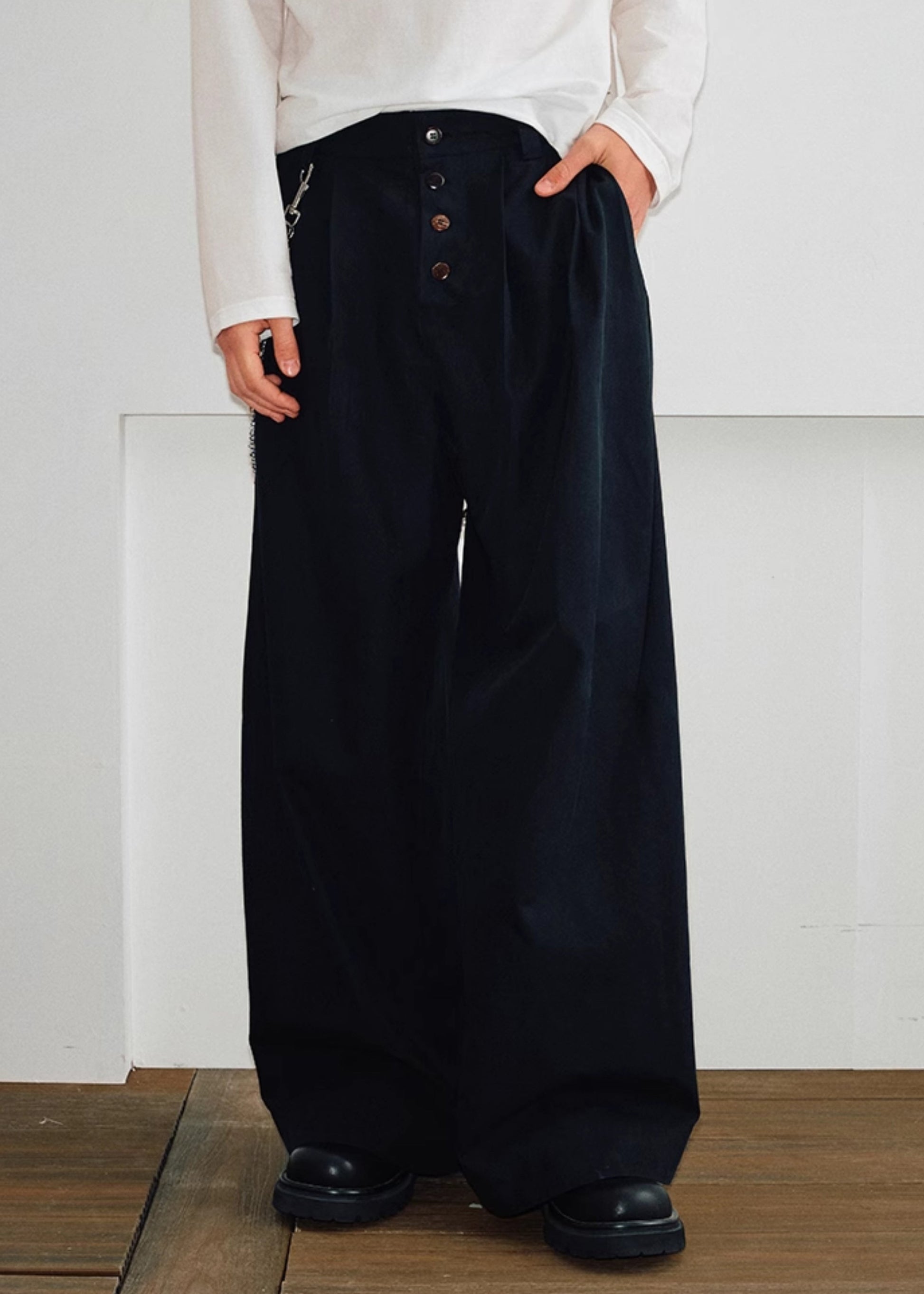 Casual Khaki Button Pockets High Waist Cotton Mens Pants Spring