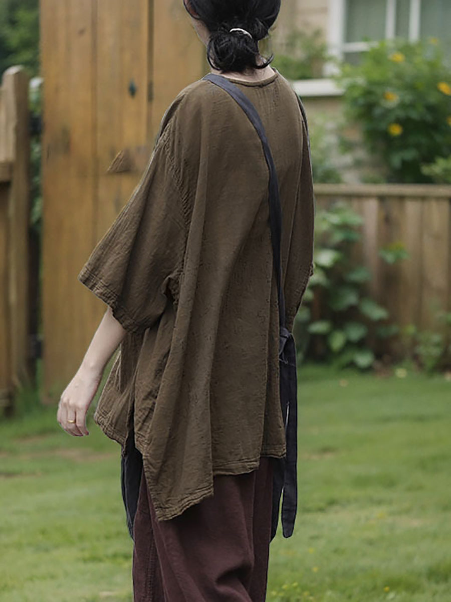 Casual Summer 100%Cotton O-Neck Pure Women Color Shirt