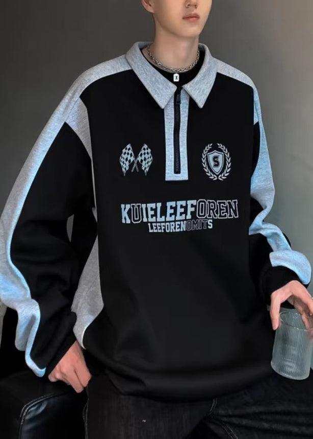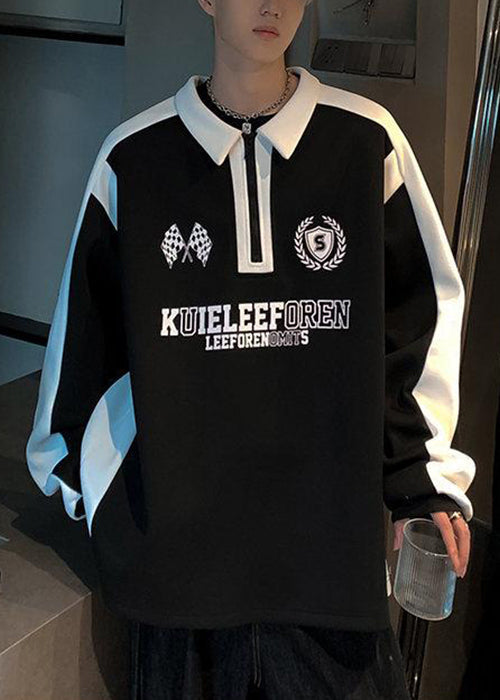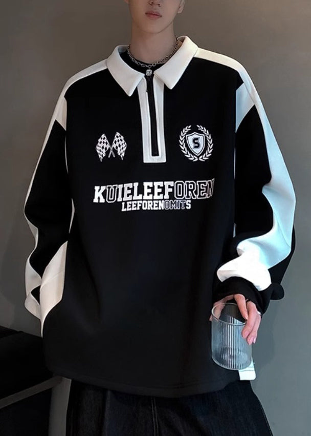 Spring White Streetwear TC030 Patchwork Casual Men Cotton Print Zippered