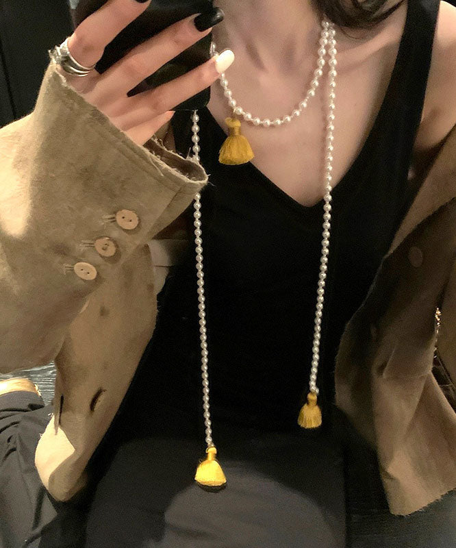 Chinese Style Yellow Alloy Pearl Beading Tassel Pendant Necklace YA007